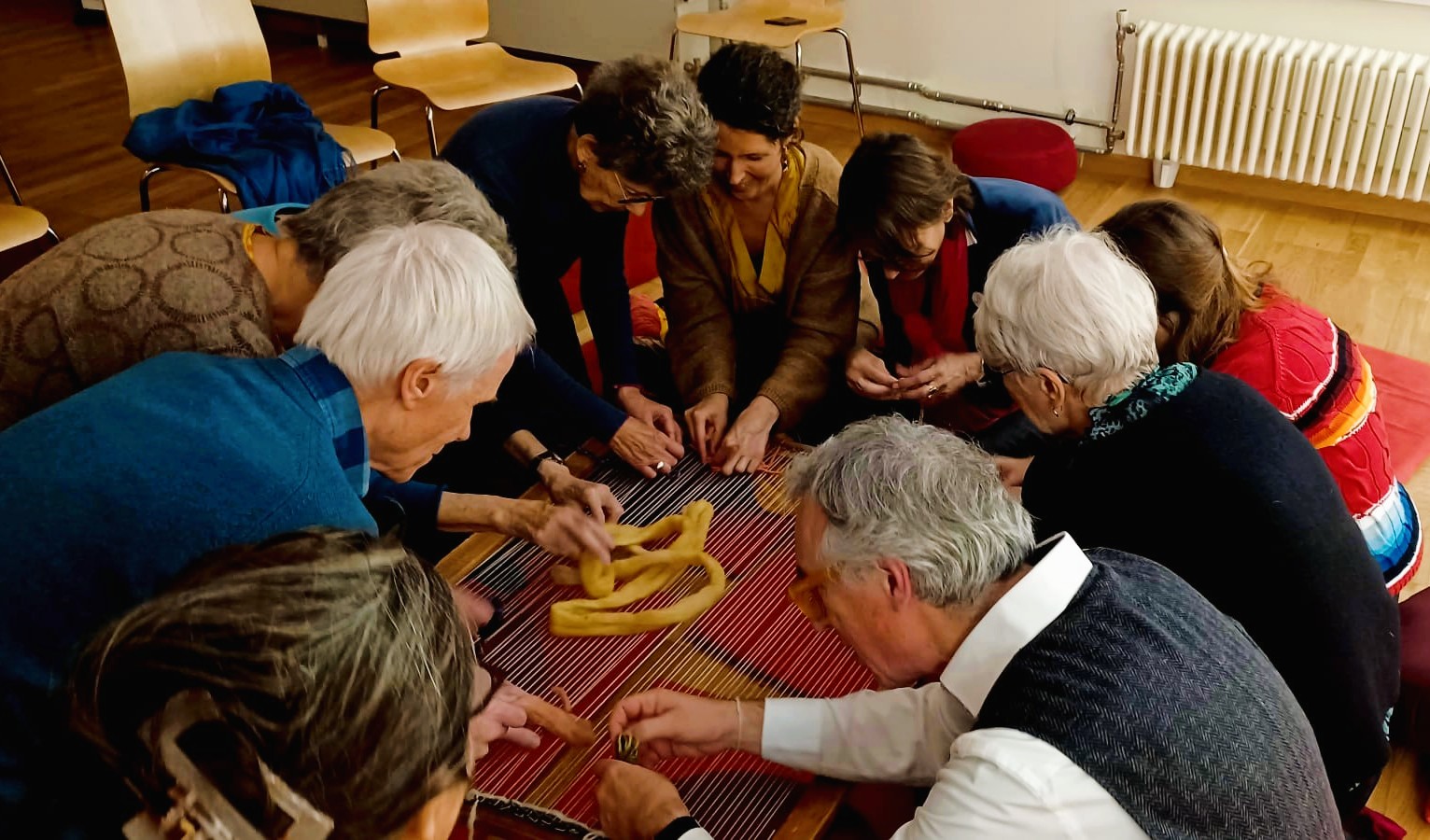Le tissage collectif circule entre les communautés durant la semaine des religions.